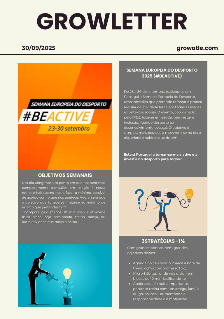 Acompanha a notícia da semana, os objetivos propostos juntamente com as estratégias que te tornam 1% melhor todos os dias!