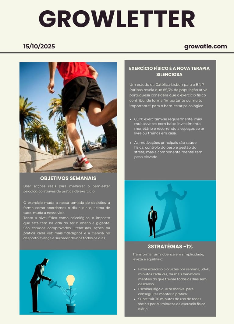 Exercício físico em alta e os portugueses a mostrarem cada vez mais compreensão e necessidade de exercício físico diário: é tão bom para a saúde física, mas é principalmente essencial para a saúde mental!