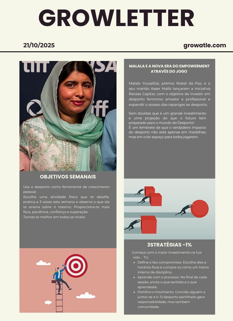 Newsletter desta semana apresenta uma notícia impactante no mundo do desporto, com um casal investidor que decidiu investir em mis formações e apostas em Mulheres adultas e jovens para integrarem e praticarem mais atividade, para terem mais acesso ao desporto.